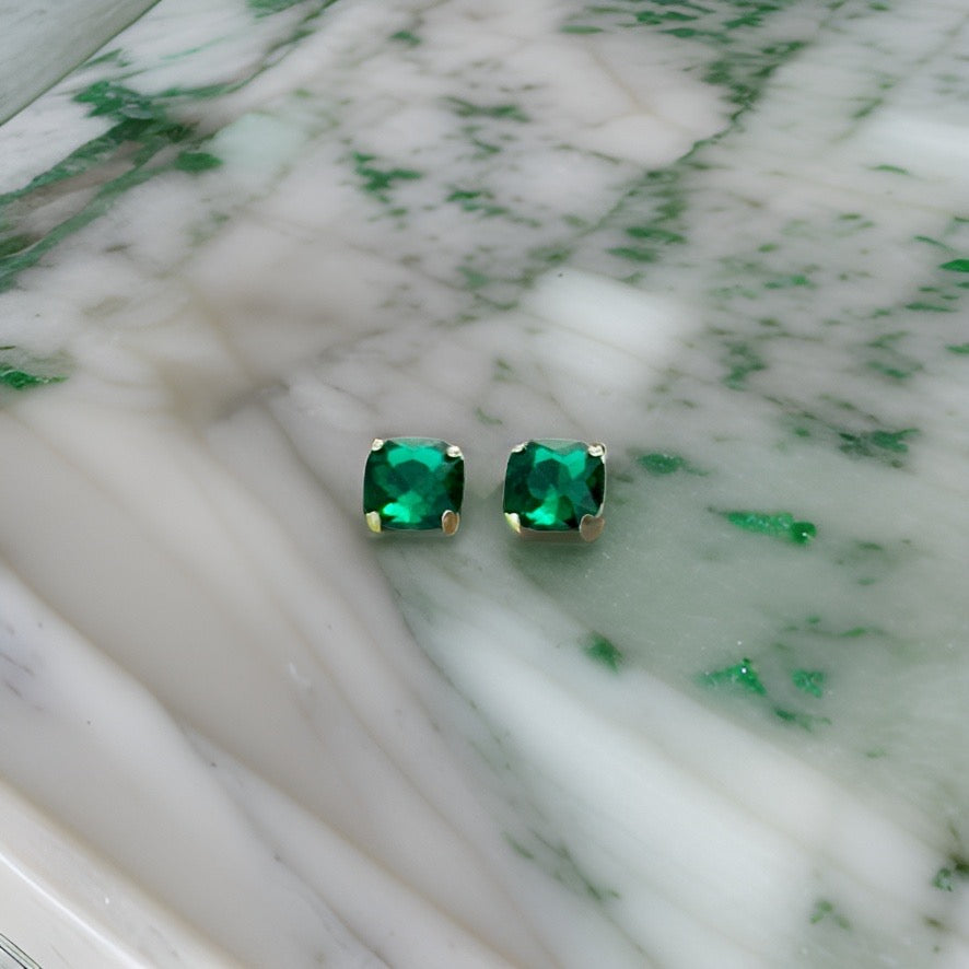 Large Emerald Crystal Square Stud Earrings