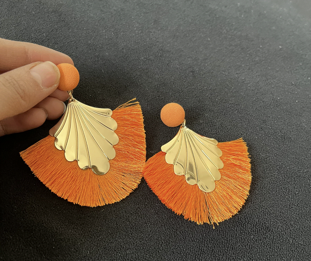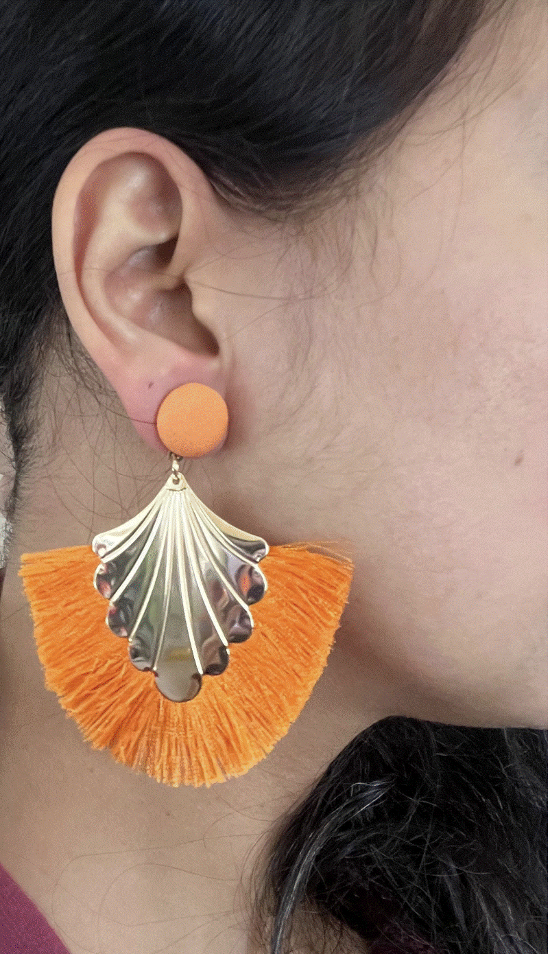 Orange Fan Earrings