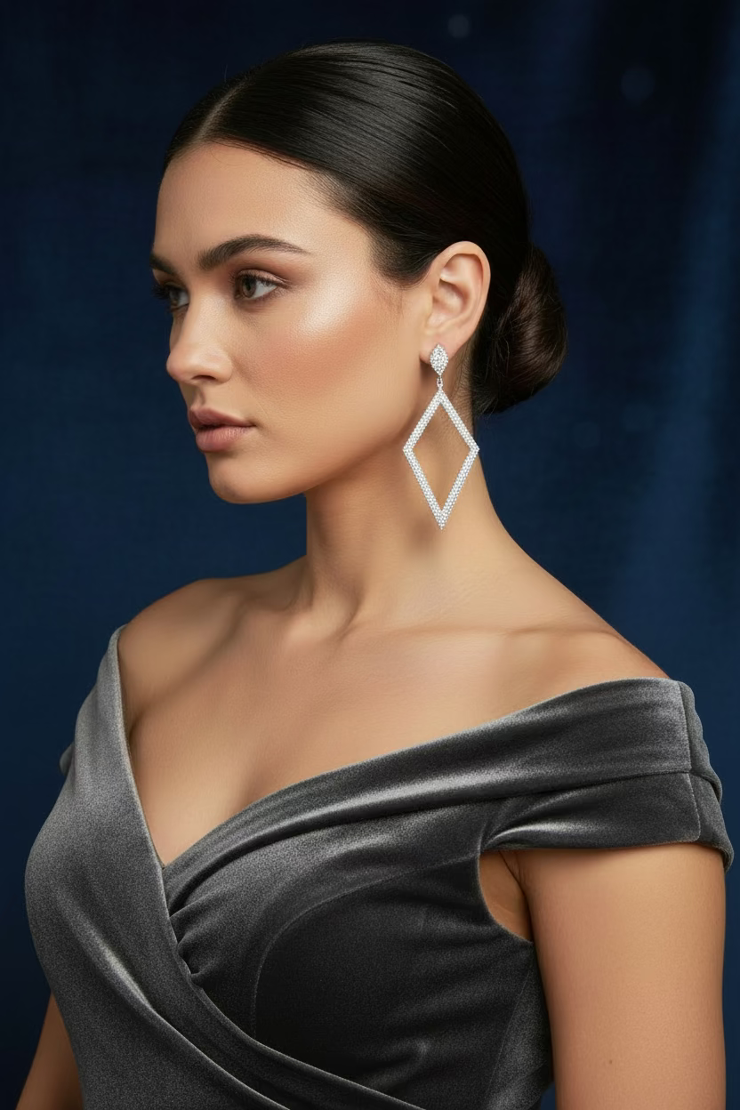 Elevate your formal look with these radiant diamond-shaped rhinestone earrings that combine stunning sparkle with effortless comfort. Crafted to be feather-light, they're designed for all-day wear without the weight, making them the perfect choice for galas, weddings, and special occasions where you want to shine without compromise.