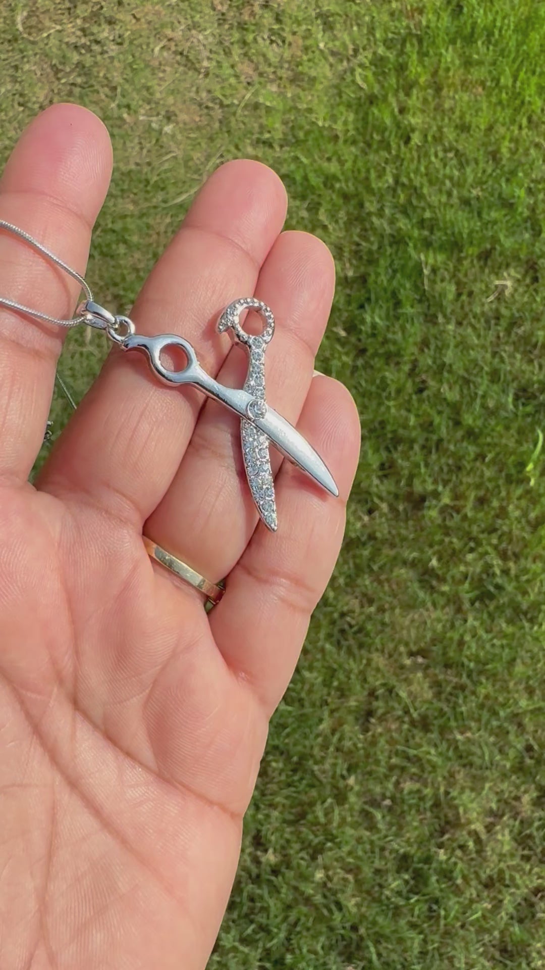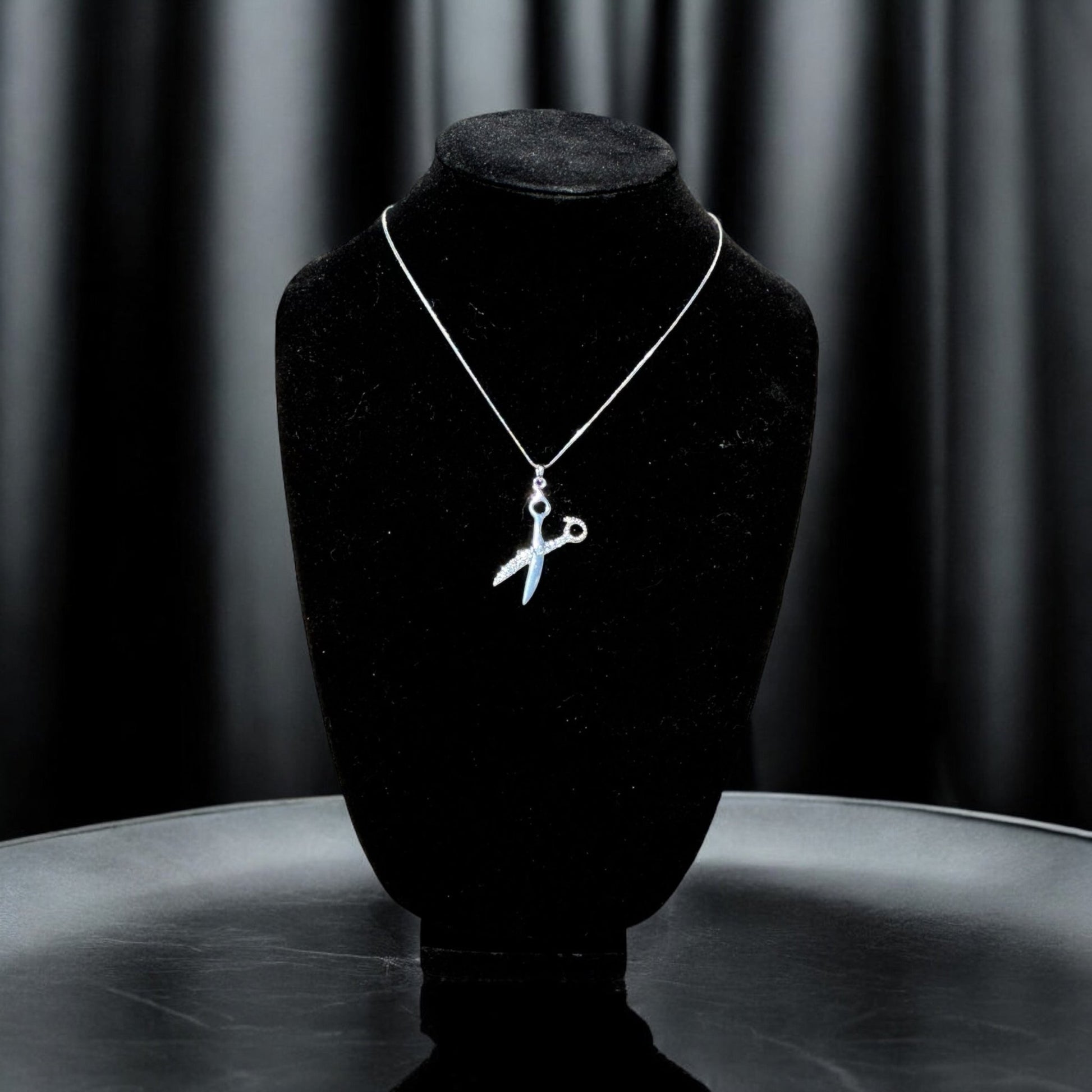 Indulge in the allure of this necklace - a glamorous statement piece for hair professionals, from hair stylists to barbers. Adorned with sparkling crystals, the large scissor pendant will surely captivate all eyes.